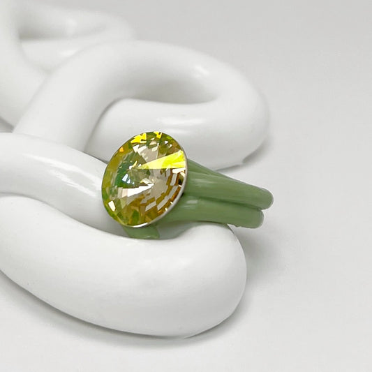 Yellow Green Crystal Ring in Sage